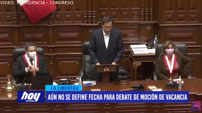 Este sábado 31 de octubre no se someterá a debate la admisibilidad de la moción de vacancia presidencial contra Martín Vizcarra. El Vicepresidente del Congreso de La República y Congresista liberteño, Luis Valdez, añadió: «aún no hay una fecha definida».