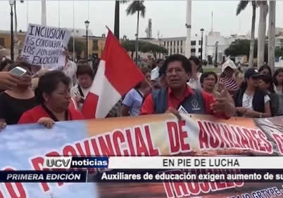Auxiliares de centros educativos acataron paro de 24 horas a nivel nacional. Ellos exigen el aumento de sus salarios que en la actualidad alcanza los 900 soles.