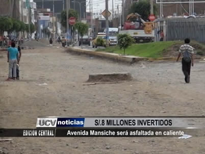 La cuestionada obra de remodelación de la avenida Mansiche y anexos será asfaltada en caliente en los próximos días hasta en dos kilómetros. El supervisor edil informó que la construcción de veredas y sardineles tiene un avance de 70%. El proyecto estima una inversión de ocho millones de soles.
