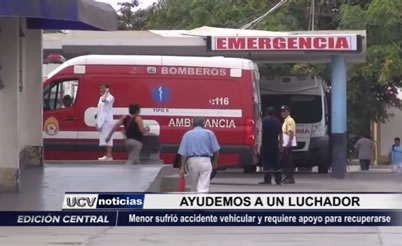 Un menor de doce años de edad, quien sufrió un accidente vehicular en Ascope, requiere de ayuda para costear su recuperación. En tanto, la familia pide que la empresa de transportes que causó el accidente se haga cargo de los gastos. Para brindar su ayuda puede comunicarse al 949 033 665.