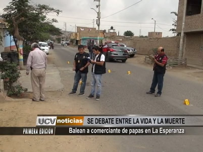 Un proveedor de papas a pollerías de la ciudad fue baleado en La Esperanza. Él se encontraba haciendo gestiones de su negocio cuando fue interceptado por unos desconocidos, quienes le dispararon hasta seis veces.