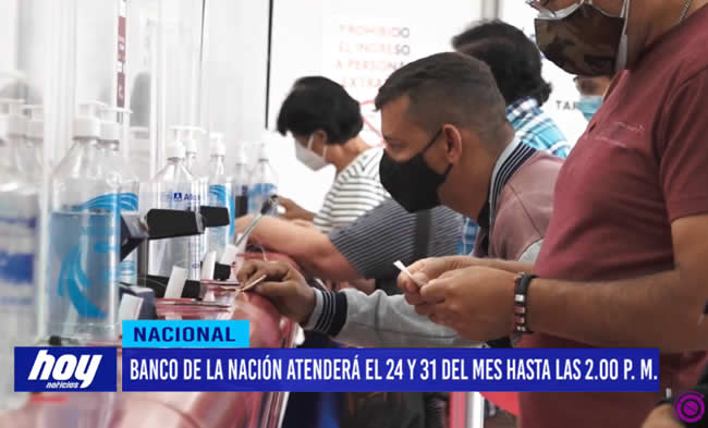A fin de evitar contratiempos para los usuarios, el Banco de la Nación informó que el horario de atención en las agencias para el 24 y 31 de diciembre será de 8 a.m. a 2 p.m.