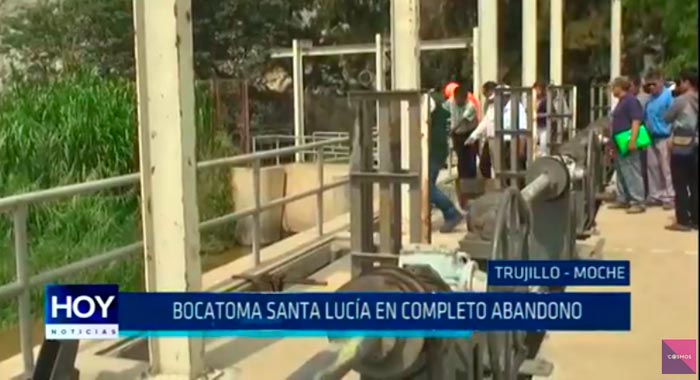 Representantes del Ministerio de Agricultura y de la Autoridad Nacional del Agua constatan las pésimas condiciones en la que se encuentra la bocatoma Santa Lucía en Moche.