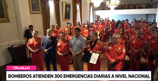 La Municipalidad Provincial de Trujillo otorgó un reconocimiento al General de la Compañía de Bomberos, Juan Carlos Morales, Comandante General de la Compañía de Bomberos del Perú. Este homenaje se realizó en mérito a su destacada labor durante el último siniestro ocurrido en Lima.