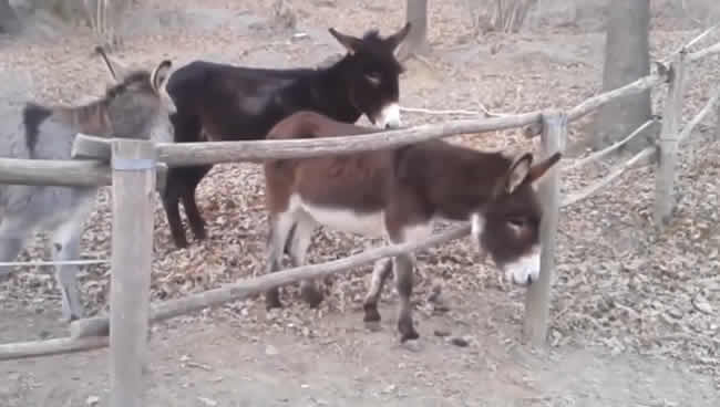 Los burros son clasificados como los animales menos inteligentes. Así se aprecia en la primera parte de este video, donde uno de los tres burros encerrados en un corral busca la manera de escapar del lugar, pero sin éxito.
