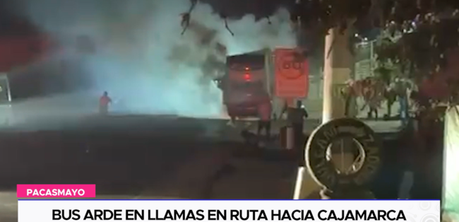 Un bus que cubre la ruta a Cajamarca, ardió en llamas la madrugada del domingo, entre el sector Pakatnamu y Martha Chávez en el distrito de Guadalupe provincia de Pacasmayo.