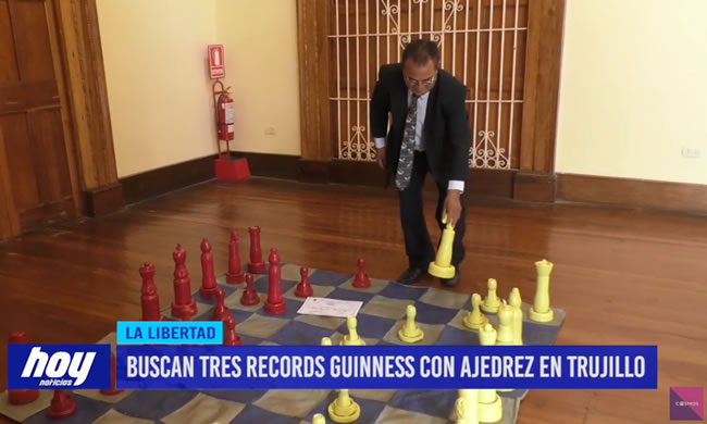 Profesor de Trujillo busca registrar 3 récord guinness con el ajedrez, en esta ciudad se buscará imponer la marca mundial con 100 juegos de ajedrez gigante, el rey más alto del mundo y la marathon de ajedrez.