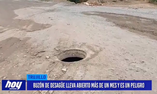 Buzón de desagüe lleva más de un mes abierto en la urb. Rosas del Valle, los accidentes van en aumento por lo que moradores piden a las autoridades solucionar este problema y también el recojo de la basura.
