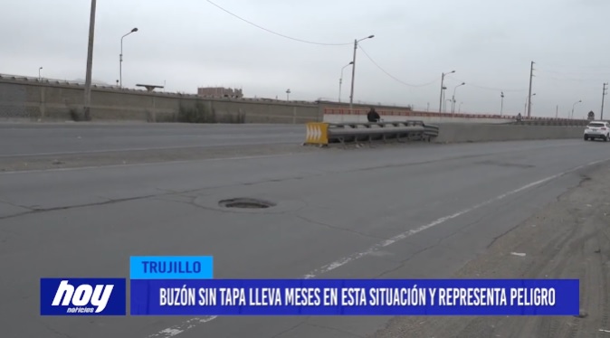 Hace más de cuatro meses un buzón sin tapa ubicado en la Panamericana Norte cerca al puente Moche, resulta un peligro para conductores y pasajeros, pues al tratar de desviar se generan varios accidentes en plena avenida donde circulan vehículos de hasta carga pesada.
