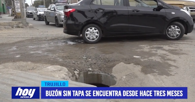 Este buzón sin tapa sigue siendo un peligro para los transeúntes y conductores desde hace más de tres meses. Los vecinos refieren que pese a los constantes llamados a las autoridades nadie se hizo presente, además que en varias oportunidades varios taxis han quedado atrapados en este gran forado.