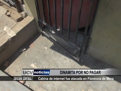 Una vivienda usada para el negocio de alquiler de cabinas de internet sufrió una explosión de dinamita en la puerta principal. Al parecer, el ataque se produjo porque los dueños del comercio se negaron a pagar cupos por extorsión.