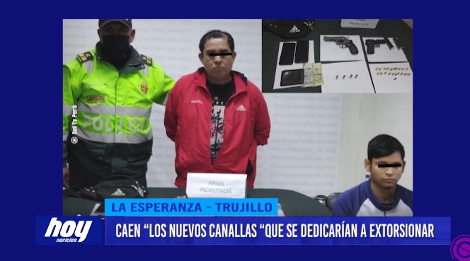 En el distrito de La Esperanza en la ciudad de Trujillo detuvieron a dos presuntos integrantes de la banda criminal “Los nuevos canallas” quienes se encontraban a bordo de un vehículo portando armas de fuego y municiones. Los intervenidos fueron identificados como Alfredo Alexander De La Cruz Ninatanta de 44 años, alias “El Gringo», a quien se le encontró una pistola abastecida con 12 municiones, y Jorge Luis Morales Quispe de 25, alias «El Cojo», quien tenía dentro de su morral, un revolver abastecido con cuatro 4 municiones. Se presume que estos sujetos exigían cupos a comerciantes y dueños de negocios en el mencionado distrito. Ambos fueron conducidos a la comisaría de bellavista por estar inmersos en la presunta comisión del delito contra la seguridad pública y tenencia ilegal de arma de fuego.