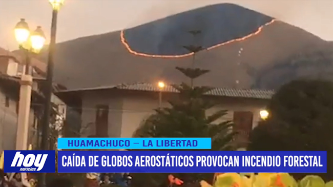La caída de tres globos aerostáticos provocó un incendio forestal en un cerro de Huamachuco, durante la procesión de la Virgen de la Alta Gracia.