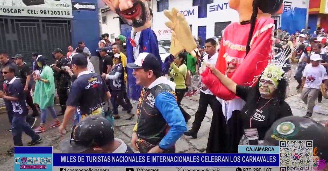 La ciudad de Cajamarca se convirtió en el epicentro de la diversión y el color por las festividades del Carnaval en la edición 2024. Miles de turistas nacionales e internacionales viven con alegría y emoción, e incluso algunos miembros PNP terminaron bañados en pintura.