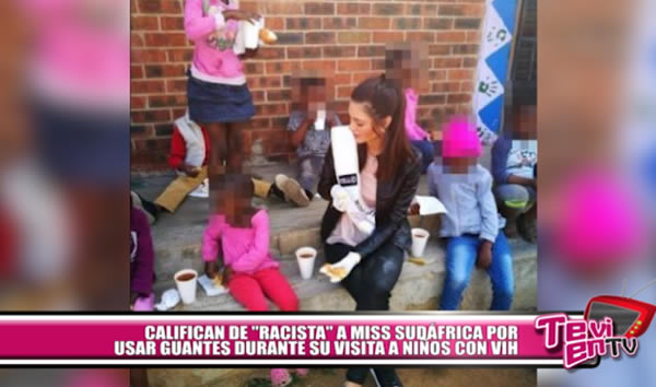 La llegada de la actual Miss Sudáfrica a un orfanato de su país ha generado gran cantidad de críticas en su contra, debido a que en su visita luce con guantes mientras come al costado de los niños.