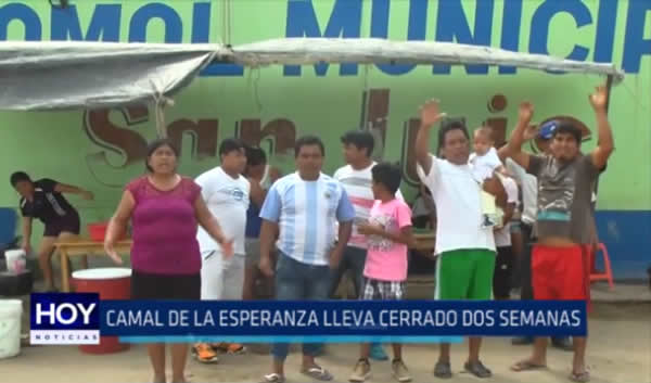Inicio Actualidad Camal de La Esperanza lleva cerrado dos semanas ActualidadNoticiasTrujillo Camal de La Esperanza lleva cerrado dos semanas Por Tv Cosmos - 19/04/2017 659 0 FacebookTwitterPinterestWhatsApp Los trabajadores del camal de La Esperanza denunciaron que el matadero lleva cerrado dos semanas, lo cual afecta sus ingresos. TE PUEDE INTERESAR Si te interesa nuestras noticias, puedes seguir nuestras últimas publicaciones por Facebook, Twitter, y puedes suscribirte aquí a nuestro canal de TUITEA, COMENTA Y COMPARTE Tweets by CosmosNoticiasPe Artículos relacionadosMás del autor NUEVO CONSEJO DIRECTIVO ASUME LA ASOCIACIÓN NUMISMÁTICA Y FILATÉLICA DE TRUJILLO Congreso premiará este martes a ganadores del Concurso Nacional de Fotografía “Mujeres que Inspiran” Alejandro Sanz presenta el video de ‘Rimowa’ en colaboración con Elena Rose POPULAR CATEGORIESNoticias66232Actualidad51007Trujillo42650Nacionales9348Deportes7303Espectáculos4545 NUEVO CONSEJO DIRECTIVO ASUME LA ASOCIACIÓN NUMISMÁTICA Y FILATÉLICA DE TRUJILLO TV COSMOS - 05/03/2026 0 Congreso premiará este martes a ganadores del Concurso Nacional de Fotografía “Mujeres que Inspiran” TV COSMOS - 03/03/2026 0 Alejandro Sanz presenta el video de ‘Rimowa’ en colaboración con Elena Rose TV COSMOS - 23/02/2026 0 Jaze logra su primer sold out en México y consolida su gira internacional TV COSMOS - 23/02/2026 0 Han pasado más de 20 años y la anemia sigue afectando a más del... TV COSMOS - 19/02/2026 0 - Advertisement -