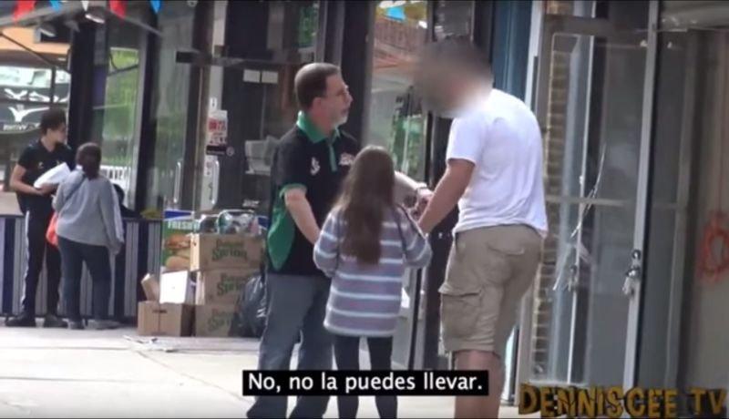 Pero en escena aparece un sujeto que cambia el contexto del vídeo. Este hombre se acerca a la niña e intenta llevársela a la fuerza, asegurando saber dónde está su madre. Otro hombre de avanzada edad impide que se la lleven. Hasta que aparece el youtuber, quien termina llamando a la policía.