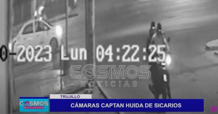 Cámaras de seguridad captaron la huida de los sicarios que asesinaron al joven de 23 años, identificado como Roger Hurtado Carrión, la madrugada del lunes en la av. Túpac Amaru.
