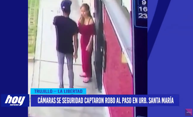 El robo al paso ocurrió en la cuadra 6 de la calle Huayna Cápac en la urbanización Santa María la tarde el lunes. Las cámaras captan cómo este sujeto se acerca sin levantar sospecha y efectúa el robo para luego huir caminando tranquilamente como si no hubiese pasado nada.