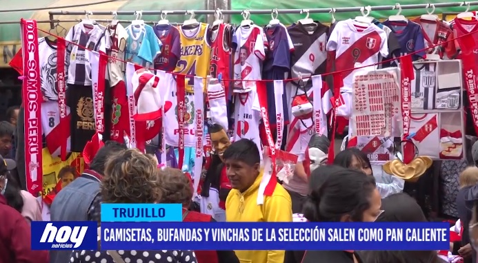 La fiesta del fútbol ya se vive en el Perú, cientos de personas acuden a las diferentes tiendas y hasta a los ambulantes para comprar camisetas, poleras, buzos, bufandas, gorras y hasta turbantes del seleccionado peruano con la finalidad de alentarlos en el partido por el repechaje de hoy.