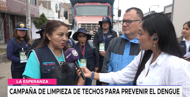 Con el objetivo de prevenir la proliferación del dengue en el distrito de La Esperanza, la Gerencia de Gestión Ambiental, en coordinación con el sector salud, ha puesto en marcha una intensa campaña de limpieza de techos y recojo de inservibles en los hogares del distrito.