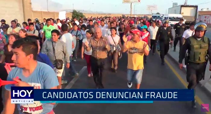 Candidatos de los distritos de Moche y Huanchaco protestaron por las calles de Trujillo denunciando fraude.