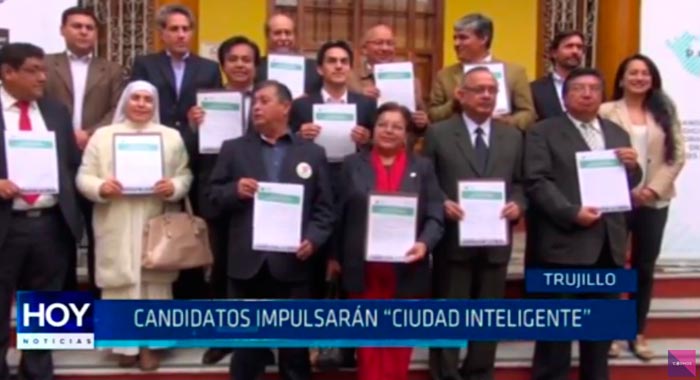 Doce de los 18 candidatos a la alcaldía provincial firmaron el “Compromiso por un Trujillo digital” que promueven el desarrollo de proyectos digitales para mejorar la ciudad.