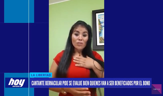 La abogada y cantante vernacular liberteña, Sumaq Warmi, «La tayanquita», ha sido una de las beneficiadas con el bono que brinda el gobierno por el estado de emergencia a las personas de escasos recursos.