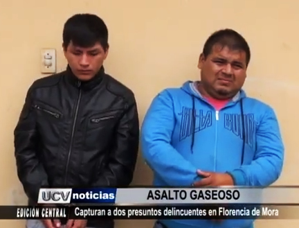 Dos presuntos delincuentes que habían asaltado y robado 1700 soles a trabajadores de una conocida empresa de bebidas fueron capturados por la policía en Florencia de Mora.