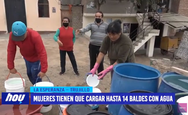 En esta parte del distrito de La Esperanza, sector Los Diamantes y Los Olivos los pobladores no cuentan con agua potable y se abastecen a través de cisternas que hasta antes de la pandemia, le llegaba más veces a la semana, sin embargo, hoy en día solo una vez.