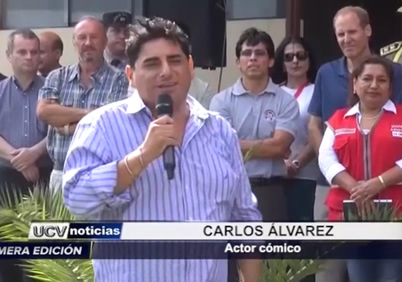 El actor cómico Carlos Álvarez y el fundador de la Universidad César Vallejo, César Acuña, llevaron una importante donación al albergue de niños Hogar de Esperanza, del distrito de Salaverry.