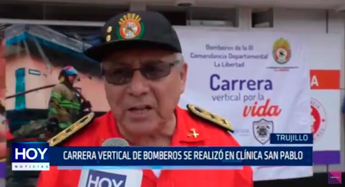 Bomberos de diferentes compañías de La Libertad participaron del concurso “Carrera vertical por la vida” realizado en la clínica San Pablo, la competencia consistió en subir y bajar del edificio de 13 pisos portando un equipo que pesa más de 30 kilos.