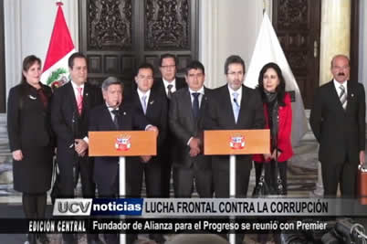 El fundador y líder de Alianza Para el Progreso, Cesar Acuña Peralta, junto a otros integrantes de este partido político se reunieron con el presidente del Consejo de Ministros y propusieron una lucha frontal contra la corrupción. Además, presentaron propuestas para intensificar la lucha contra la delincuencia y una reforma de la educación.