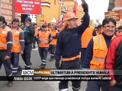 La CGTP se volcaría a las calles si tras el próximo mensaje presidencial, Ollanta Humala no anuncia el incremento del sueldo mínimo vital y estabilidad laboral de los obreros en el país.