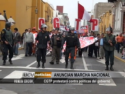 La CGTP anunció una marcha para el próximo 3 de abril en contra de las políticas de gobierno de Ollanta Humala. Denunciaron que se alió con los empresarios y olvidó a las personas de escasos recursos del país.
