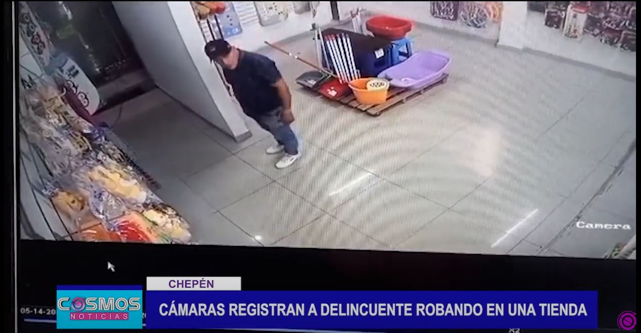 En la provincia de Chepén, los robos son pan de cada día. Cámaras de seguridad registraron cuando un sujeto ingresó a robar a una tienda. Según los propietarios, se llevaron seiscientos soles.