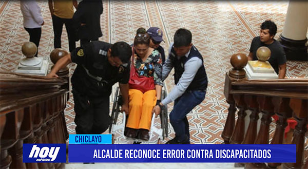 El alcalde de Chiclayo, Marcos Gasco, reconoció que fue un error la manera en que fueron tratadas las personas con discapacidad al ser alzadas en peso cuando acudieron a un evento que se realizaba en el segundo piso del Palacio Municipal.