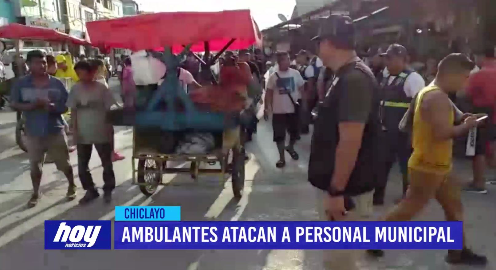 Personal de serenazgo y la Policía Municipal de Chiclayo iniciaron una serie de operativos para recuperar los espacios públicos en el Mercado Modelo. Un ambulante, al parecer venezolano, agredió al personal municipal portando un arma blanca.