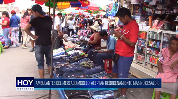 Los ambulantes de los alrededores del Mercado Modelo de Chiclayo se mostraron preocupados ante la resolución emitida por el Poder Judicial donde se le da un plazo de 15 días al alcalde de Chiclayo para el reordenamiento de este centro de abastos. Ellos no están de acuerdo en que los desalojen del lugar. Más de 5 mil ambulantes serian afectados.