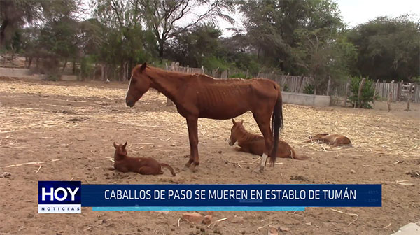 Muy triste es la situación de hasta 100 caballos de paso en un establo propiedad de la Agroindustrial Tumán. Los animales se encuentran totalmente flacos a consecuencia de los diversos problemas de la mencionada empresa que a causado su total descuido.