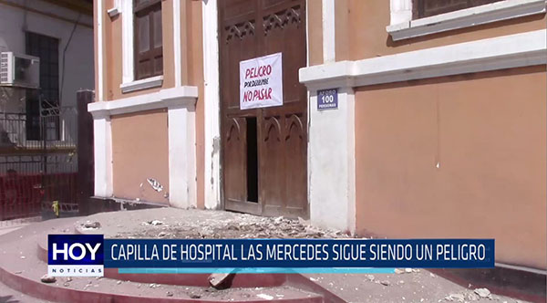 La capilla del hospital Las Mercedes se sigue derrumbando y lo más lamentable es que no se cuenta con el presupuesto para realizar acciones preliminares en este lugar.