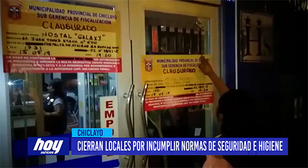 La Gerencia de Seguridad Ciudadana y Fiscalización de la Municipalidad Provincial de Chiclayo clausuró temporalmente los hostales «Galaxy» y «Satélite» en la urbanización José Quiñones, por falta de higiene