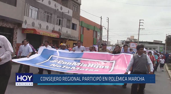 Dentro del desarrollo de la marcha Con mis hijos no te metas, llamó la atención la participación del electo consejero regional Manuel Huacchillo quien declaró que llegado el caso se revisaría el trabajo del Consejo Regional por la Igualdad de Género actualmente en vigencia en el Gobierno regional de Lambayeque.