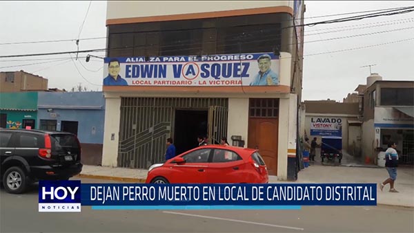 Sujetos desconocidos dejan perro muerto en los exteriores de local de campaña de candidato del distrito de La Victoria. Asegura desde hace varios días vienen siendo víctima de «reglaje» por parte de personas a bordo de motocicletas.