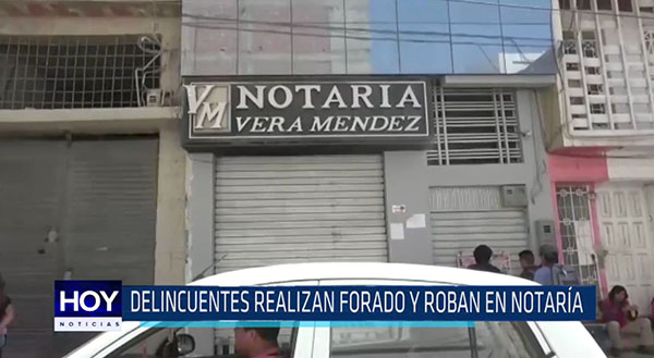 Delincuentes hicieron un forado y robaron aproximado veinte mil soles en efectivo, además de documentación de una notaría ubicada en pleno centro de Chiclayo.