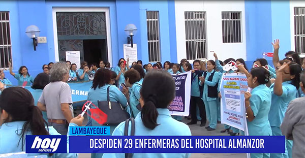 Un grupo de enfermeras del Hospital Almanzor Aguinaga Asenjo hicieron un plantón en horas de la mañana, como medida de protesta ante el despido de 29 enfermeras de esta institución. Ellas solicitaron una reunión con el director de esta institución.