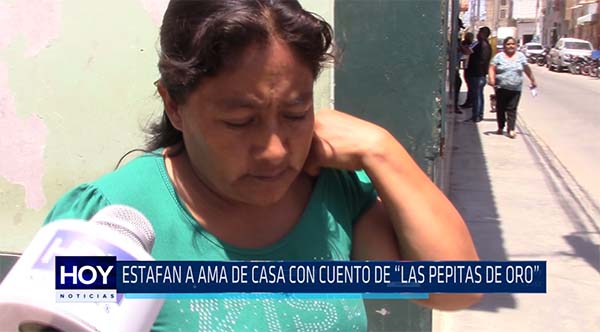 Dos sujetos con el cuento de las pepitas de oro y la entrega de un terreno, estafaron a un ama de casa, lográndose apoderarse de 28 mil soles que esta mujer retiró de dos entidades bancarias