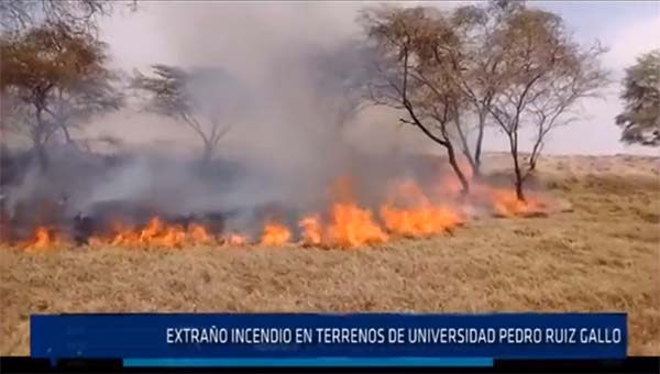 Un extraño incendio se produjo en los terrenos de la Universidad Nacional Pedro Ruiz Gallo. Sus autoridades sospechan de posibles invasores que tratan de apropiarse de predios de la casa superior de estudios