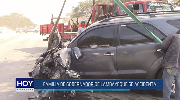 Un triple choque se produjo en la carretera Chiclayo – Monsefú, resultando heridos los hijos y el hermano del gobernador regional Humberto Acuña, que iban en una camioneta además de los choferes de las otras dos unidades. El accidente ocurrió aproximadamente a las 6 de la mañana.