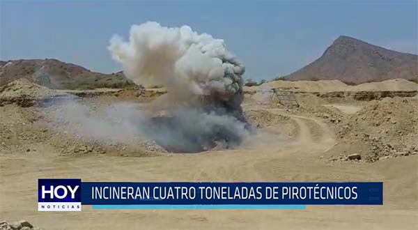 Cuatro toneladas de material pirotécnico fueron incineradas por especialistas de Sucamec y efectivos de Unidad de Desactivación de Explosivos. Esta actividad se realizó en las canteras del distrito de Manuel Mesones Muro.
